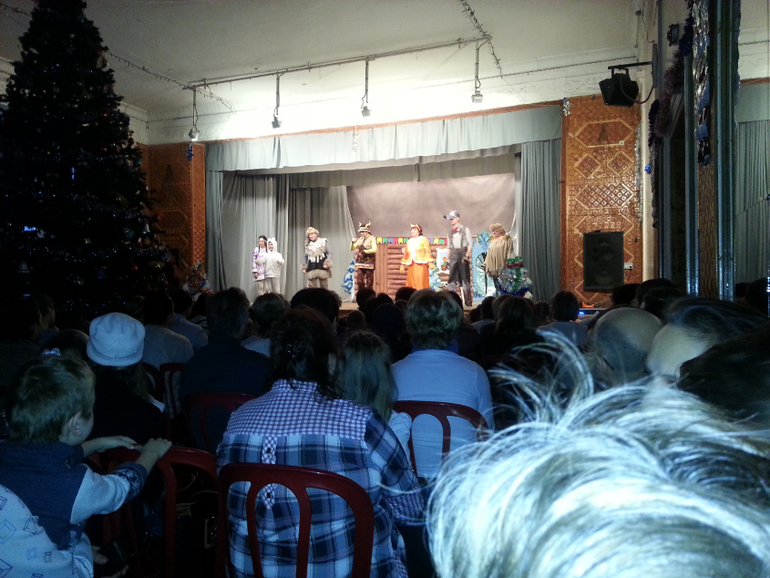 Маленький кусочек представления в Доме пионеров. Второй год попали и очень нравится. Чудесный спектакль и здОровская дискотека после него. Моя ляля в этот раз без стеснения танцевала вместе со всеми и сидела вообще отдельно от нас в "детском секторе" вместе с дрегими детишками. Явный признак взросления. (В прошлом году она была всё время с нами и никуда не отходила ни на шаг.)