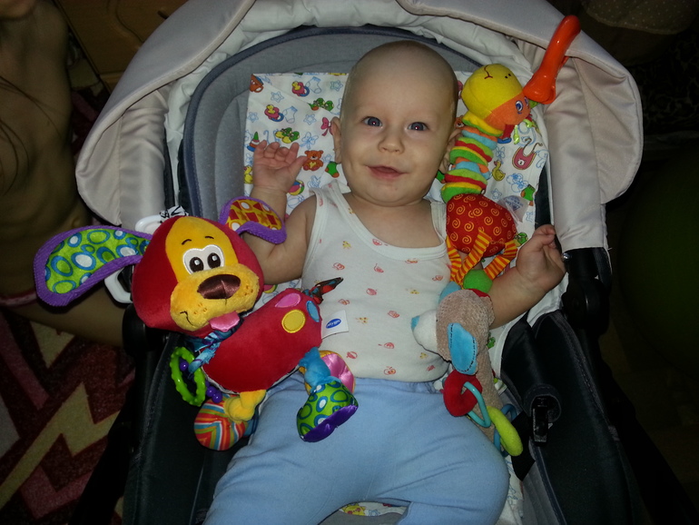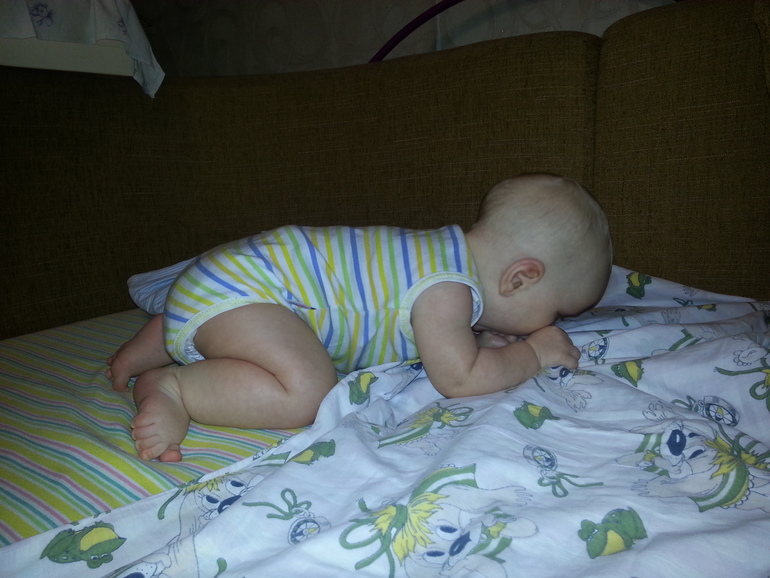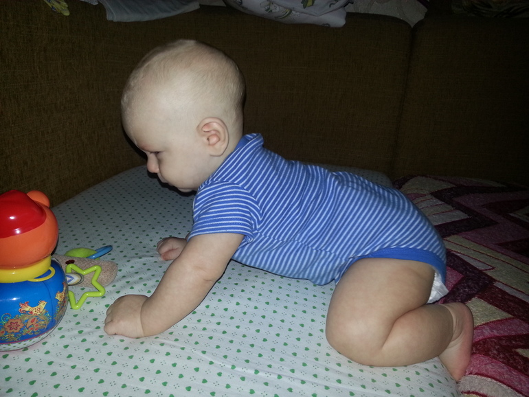 Рост 65 см (+1), вес 7700 г (+700). Тяжёленький стал малыш и это бы ничуть не мешало, не полюби он внезапно на руках сидеть. Так ему, видите ли, мир лучше видно!
