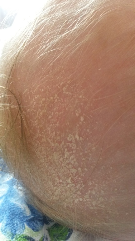 Помню такое у старшей было. Ничего специального не делала. Тогда может масло вроде советовали перед купанием наносить и потом смывать. Вроде как смягчать корочки должна была и потом смываться.
