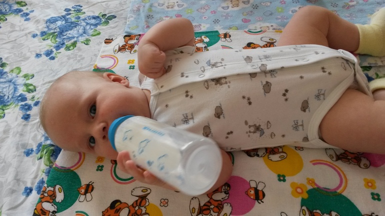 Ну вот и вы дождались самого приятного слова!!! Как здорово бутылочку держит, умничка!
