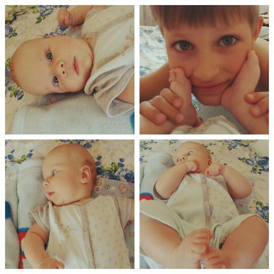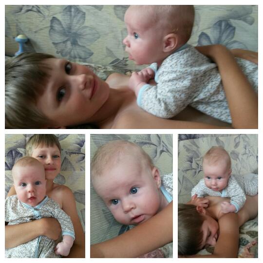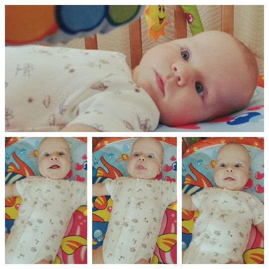 4. Стал наконец-то упираться на ручки и держать хорошо голову, лежа на животе.