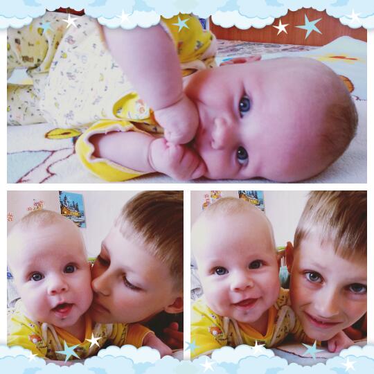 Малыш наш подрастает...серьезным парнем будет ))) его чтобы разговорить нужно приложить немало усилий...а он только мило широко улыбается...без звука )))) На улице все чаще и чаще гуляем на ручках торчком...мир познаем. Дома тоже уже лежать сам не хочет...надо носить. А на днях телевизор его привлек...да так, что голову выворачивал...только дай посмотреть )))