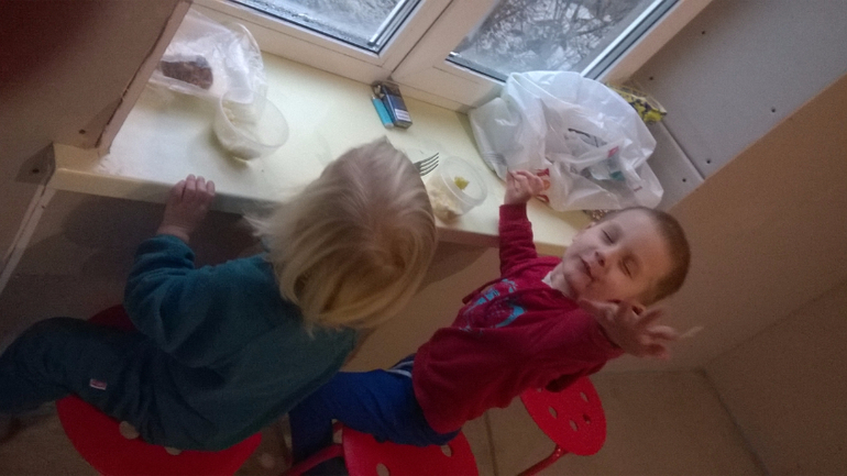 кстати, в пустом доме подтверждается правило: меньше игрушек - больше фантазии. Они без специальных детских прибамбасов находят множество занятий и не просят меня с ними играть, стены моют, в догонюшки играют, в молотки, киянки, тачки и пр.