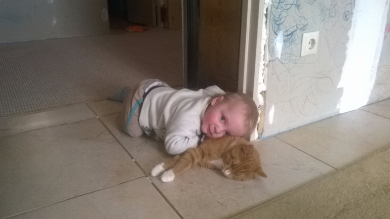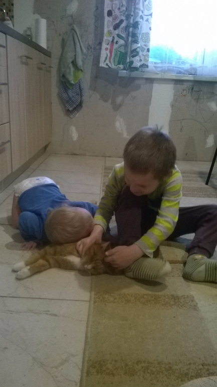 Так, например, сам подходит играть к старшим (по голове стукнуть или за волосы дёрнуть, а ещё весело "помочь" Елисею в игре на планшете, ой, да много всяких радостей можно брату и сестре доставить)), но если Яся подойдёт и обнимет его, то Лука включает сирену - его важную персону просто так хватать нельзя, нет, обнять-то можно, но превышать двухсекундный лимит объятий Ясе ну никак нельзя! Елисей с ним более бережен, но и ему не разрешаются вольности.