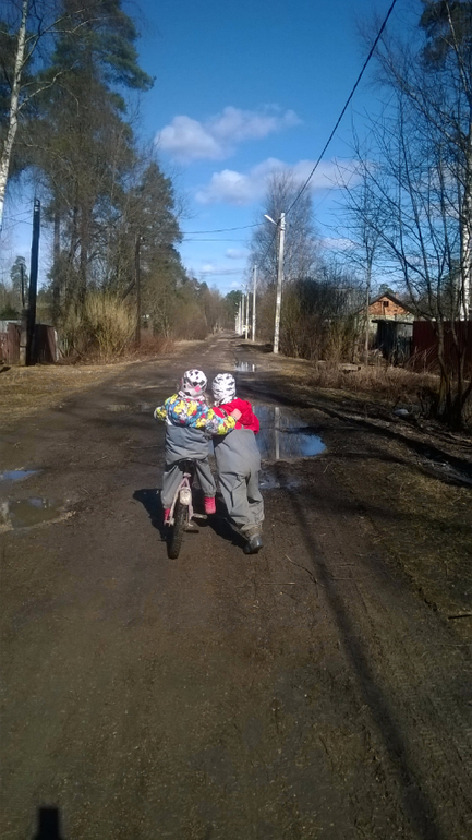 (это он её "прёт" на своём велике, потому что ей тоже очень хочется "весипед". К слову, бурлаком он работает большую часть прогулки)