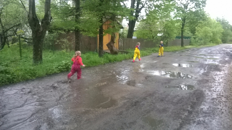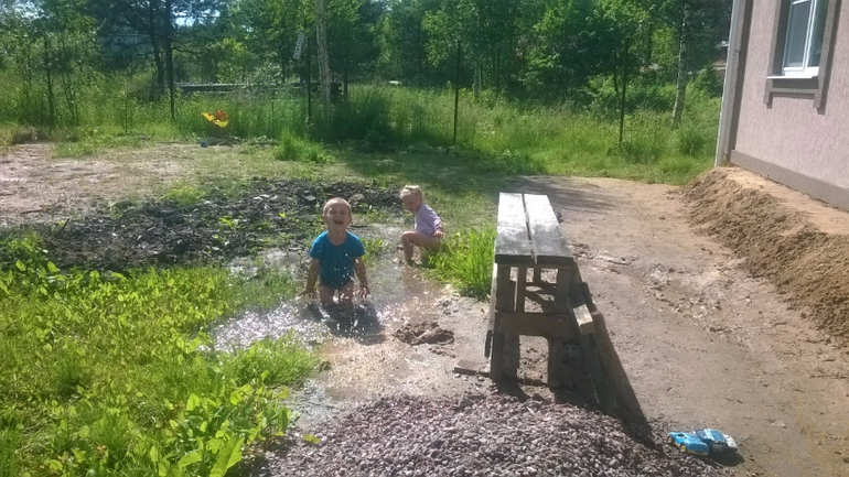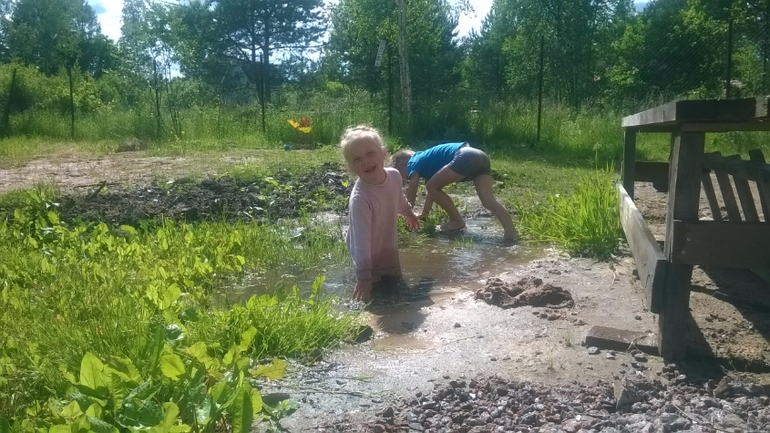 Вот, например, не дождались, когда речка прогреется, пошли купаться во временную канаву на участке.