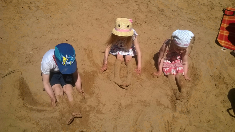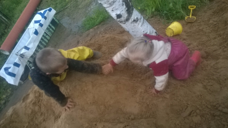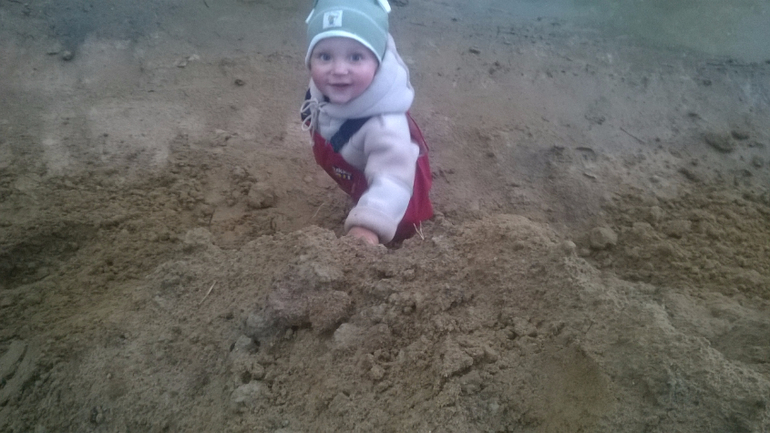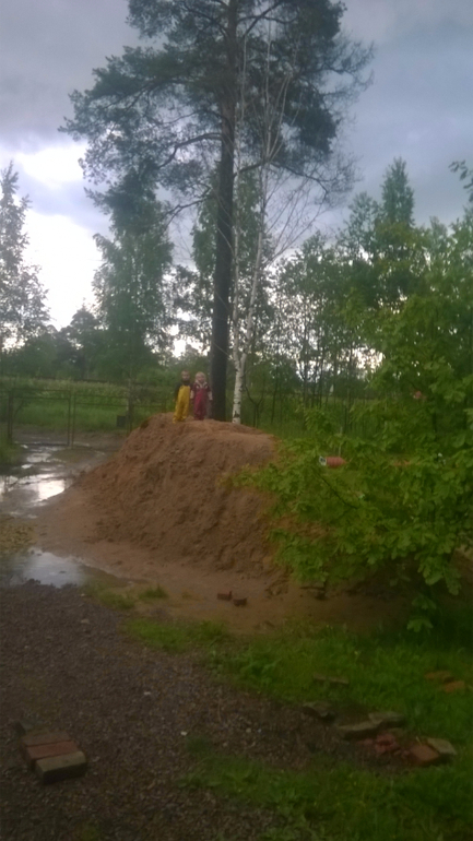 А это 3 кучи глиняного песка у нас на участке... честно, я даже мыть ТИМы перестала, просто стали раздевать их и оставлять на крыльце, потому что смысл? Чтобы 5 секунд лицезреть истинный цвет полукомбезов?