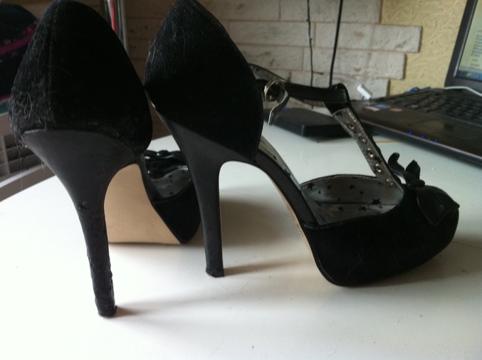 1. черные замшевые каблук 12см, одела один раз собака левый погрызла