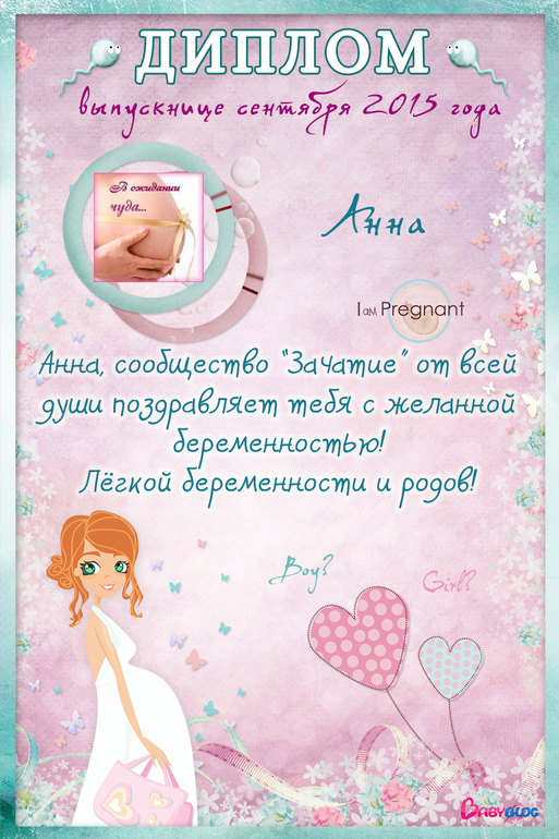 Меня зовут Аня, мне 27 лет, мужу так же. У меня есть ребенок девочка 2,5 года. Мы уже давно хотели второго ребенка, но по состоянию здоровья (у меня хронический пиелонефрит, лежала в первую беременность 3-4 раза в больнице с почками) решили подождать. И вот в сентябре стали плантровать второго ребенка и у нас получилось.