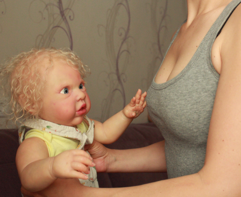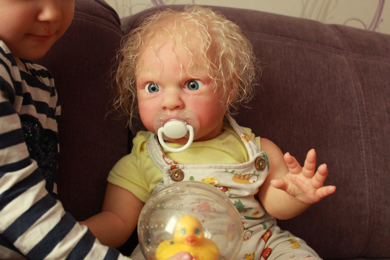 Не,эта не "пугает"),она больше похожа на куклу.Видно сразу .А вот есть у Вас действительно потрясающие,очень похожие на младенцев.