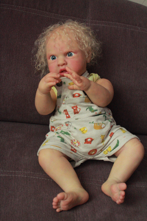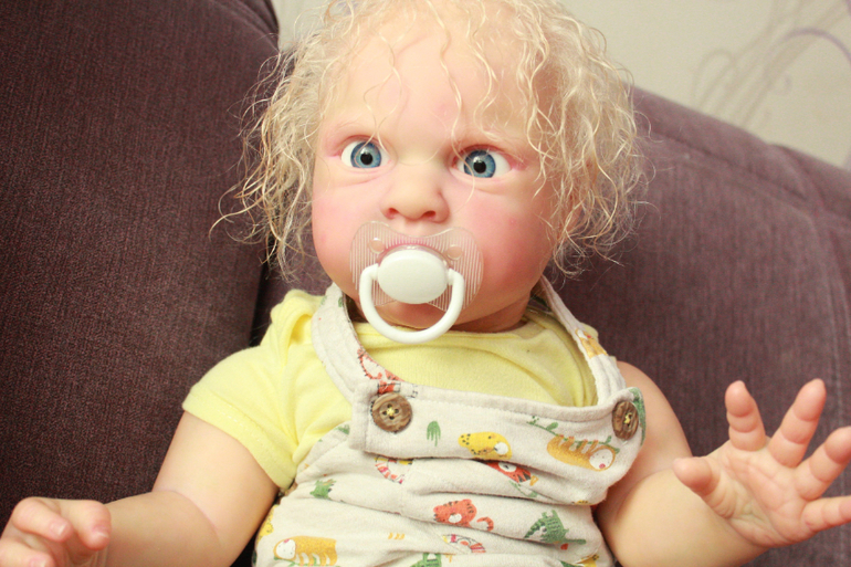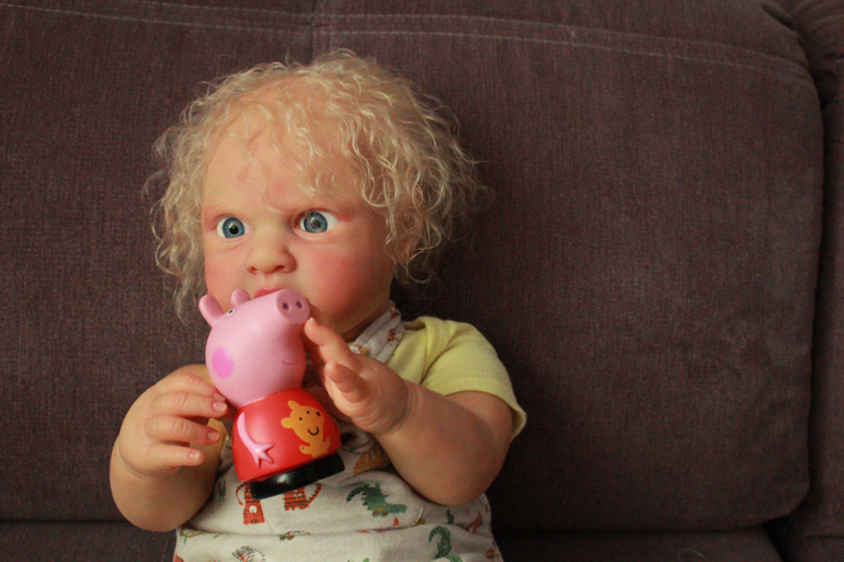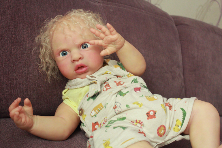 Заказала молд Эллиот по скидке. Не ждала от него подвоха. Должна была получится девочка-тоддлер. Ну это в планах)) а на деле получалась какая-то страшилка опухшая. Я так расстроилась, уже не ждала ничего хорошего, а тут бац и такой сюрприз)) малышка сама такой образ выбрала. Я немного в шоке, но приятном))