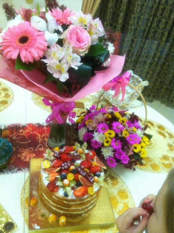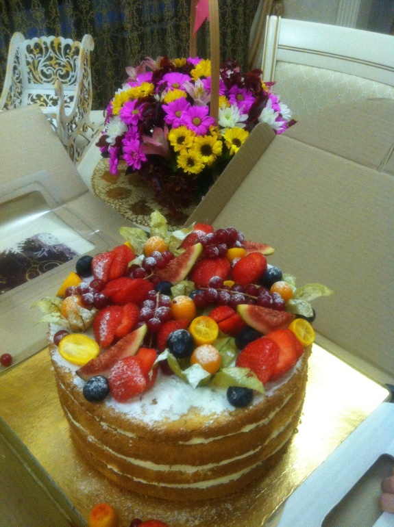 Он сейчас в Питере учится. Заказал вот такой вкусный торт. Друзья привезли.