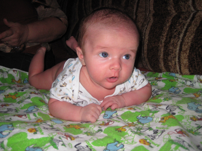 Агукает улыбается. Давно плавает в ванне с кругом и нам это нравится)) Когда лежим на животе активно сосем кулаки, то один то другой и вместе с головкой поднимает ножки)) на руках наш мальчик не любит находиться ему больше нравится лежать на диване и что бы с ним разговаривали или просто смотреть телевизор. Проблема или нет не знаю наш Илюша не какает по три дня , точнее первый раз три дня и я поставила кусочек глицириновой свечки, второй раз четыре дня и я опять не выдержала и поставила кусочек свечки при этом его не беспокоит что он не какает, но вот пукает смачно)) Мы на ГВ. Гулять ходим два раза по два с половиной три часа, все время на улице спит ночью может не просыпаться и спать до шести часов, а может через три часа вставать. Вобщем растем и радуем родителей. Да у нас еще гноился глазик не лопнул при рождении мешочек далала массаж глаза и капала капельки, сейчас все ттт, очень боялась что не лопнет и придется делать зондирование Вот такой наш любымый Илюня