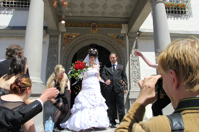 Поздравляю! Какая же ты красивая! А свидетельница в оооочень экстравагантном платье))))!