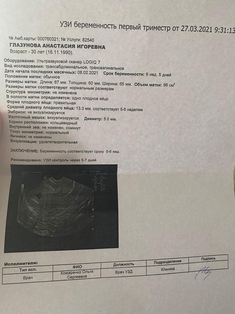 Дата последних М 8.02. 4 теста все положительные. Идет 6 акушерская неделя. ХГЧ на 15.03. - 323. Узи ничего не видит. Низ живота иногда побаливает, спина и грудь тоже, но не сильно. Узист говорит: может маточная может нет, нужно делать позже УЗИ. Гинеколог говорит: Все ок, посмотри какой эндометрий толстенный 20 мм(не знаю как это связанно). Вто