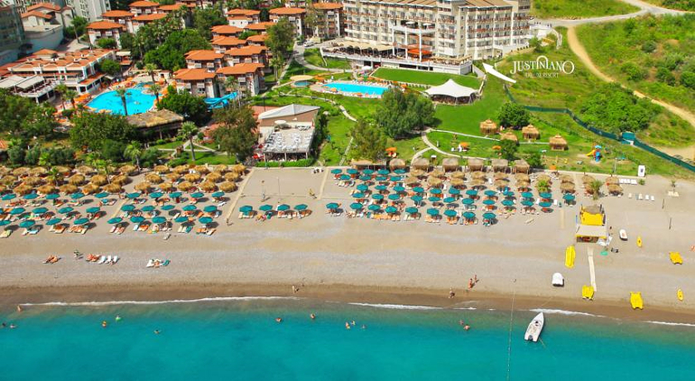 Отель состоит из основного корпуса и корпуса Теодора, выполненных в римском стиле, что позволяет почувствовать магию древнеримской истории. Жаркие лучи Средиземноморского солнца, золотая полоска пляжа, магический воздух, заряженный солоноватым дыханием моря, великолепные условия размещения, насыщенная анимационно-развлекательная программа и целый спектр вариантов времяпрепровождения делают этот отель привлекательным для большинства туристов.