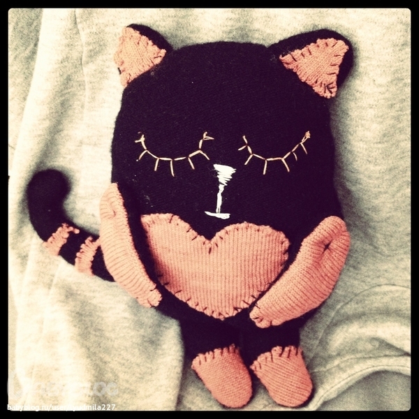На одном дыхании сшила это чудо. Вдохновила меня вот эта кошечка. За что отдельное спасибо автору! Материала весёленького не было, зато под руку свитер тёплый попался, который выкидывать собирались. И, о чудо, свитер превратился в темлого зимнего котейку)))