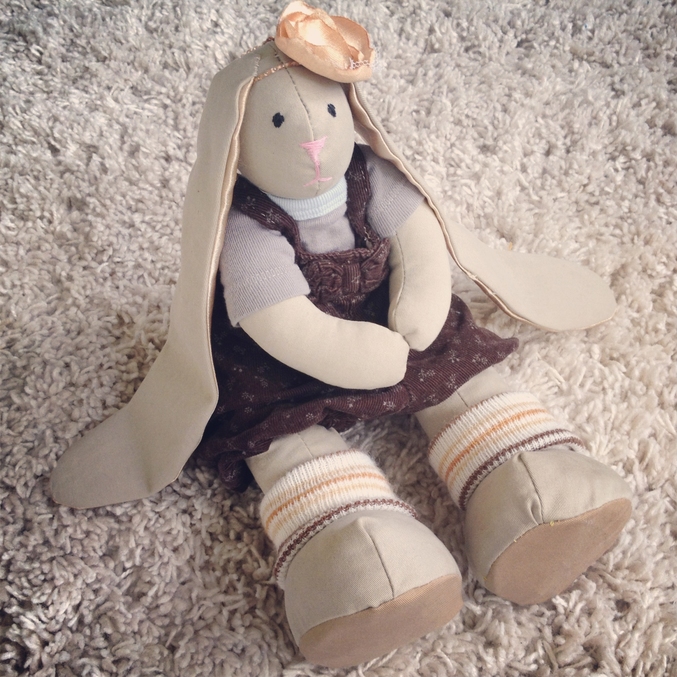 Сшила я эту красавицу довольно давно. В планах было обувь сделать, ну и на голову аксессуары красивые. Но, чувствую до этого дела у меня руки не дойдут уже, да и Зая вряд ли доживет:) Ее каждый день с такой любовью таскают за уши, катают на машинке и просто мило обнимают, что решила я скорее ее зафотографировать, пока все части целы.