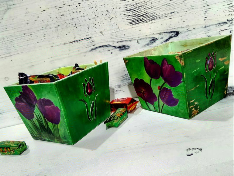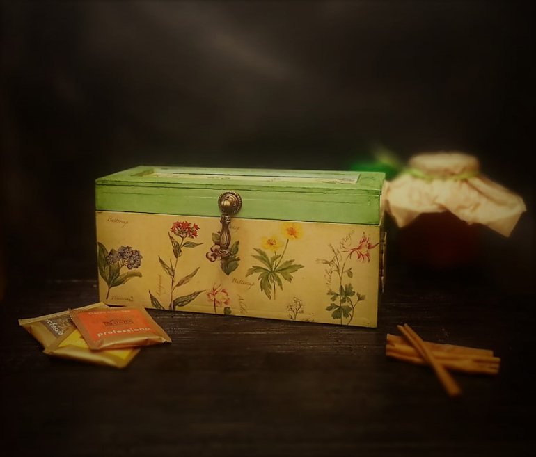 4. деревянные короба под пакетированный чай габариты 16х20х8см толщина стенки 10мм дерево, финская эмаль, декупаж, РОСПИСЬ финский лак, состаривание готовые работы и под заказ. Стоимость готового изделия 500р-700р Возможно наполнение и упаковка.