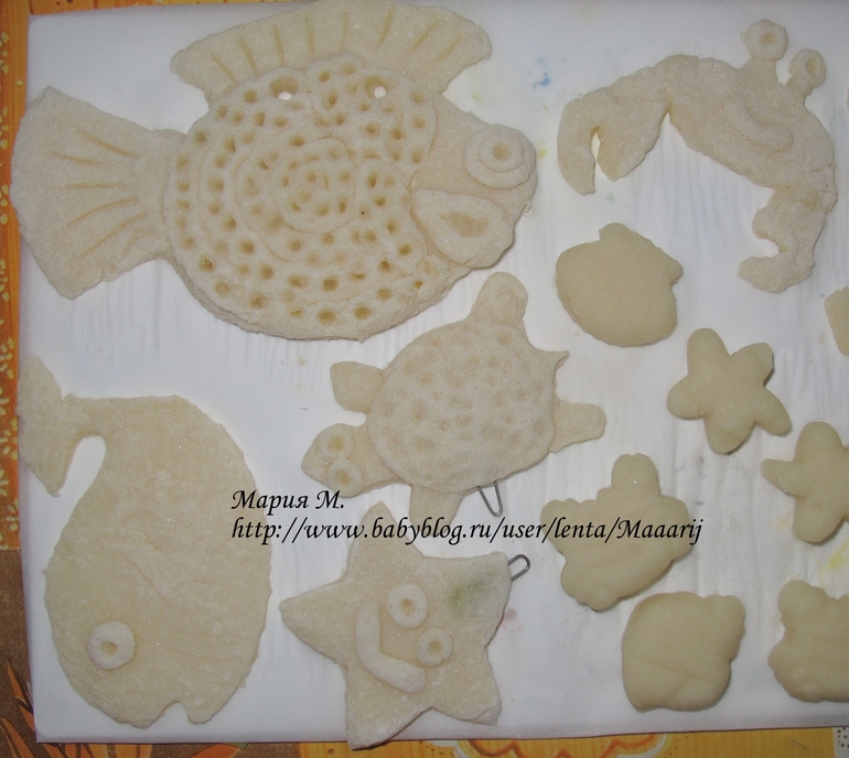 Мне нравится такой рецепт теста, единственное это тесто не очень любит духовку, все изделия лучше сушить естественно. Зато можно вставить в наши фигурки скрепки и получатся замечательные елочные игрушки!