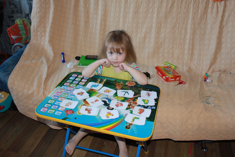 Затем поиграли в игру где чей домик. Затруднения вызвали только домики лошадки, хотя подкова все-таки помогла, и ласточки. Хотя к нам каждое лето прилетают птички очень похожие на ласточек, и живут на крыше, все лето летают вокруг дома. Думала она вспомнит. Надо сказать, это нас очень увлекло. Играли в нее еще несколько раз. А еще чуть не забыла, когда первый раз играли, у нас потерялся улей, и пчелка осталась без домика. Я хотела ее убрать, что бы она не смущала, но Варя решила что все остальные буду спрашивать у пчелки где их дом, а она будет им подсказывать.