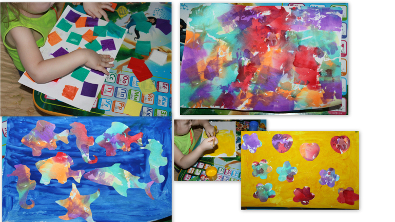 Нашла дома от старого набора для творчества эту самую бумагу, решила предложить Варе порисовать с ее помощью. Вот что из это получилось.