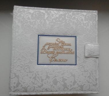 Хочу показать мой новый свадебный альбом. Альбом выполнен на заказ. Пожеланием заказчика было оформление в сине белых тонах с золотистыми нотками. Размер по обложке 24Х24, 6 разворотов. Альбом вмещает 114 фотографий 10Х15. В основе страниц фотокартон 300 гр.