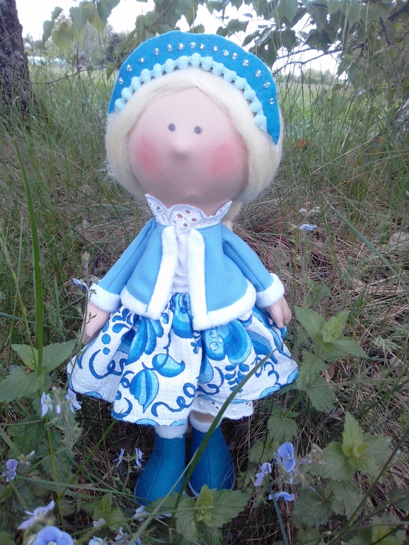 Вот такая Гжелочка получилась. Высота куколки 36 см.