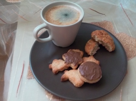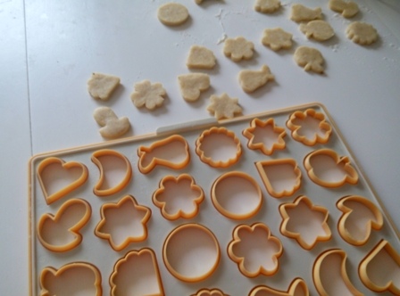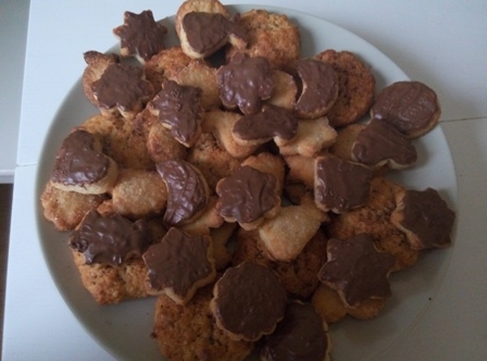 Из остального налепила печенюшек. Опробовала новую форму-помощницу. Часть готовых печенек смазала растопленным молочным шоколадом.