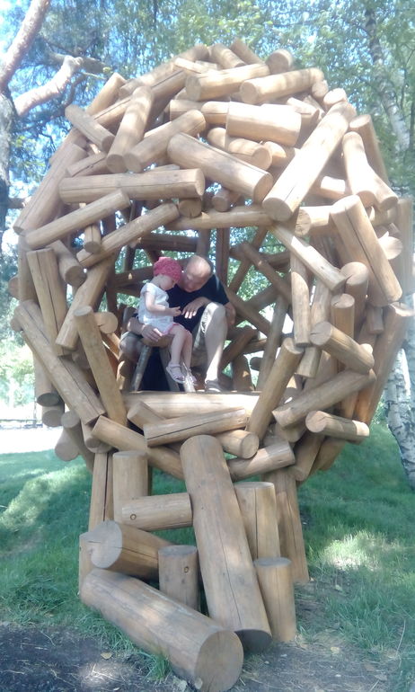 Это место понравилось больше всего! Песок, вода, раздолье для малышей, разулись и походили босиком. Также босиком побегали по дорожкам из разных камушек, ракушек, опилок. На тарзанке попробовали прокатиться. В обязательном порядке качели.