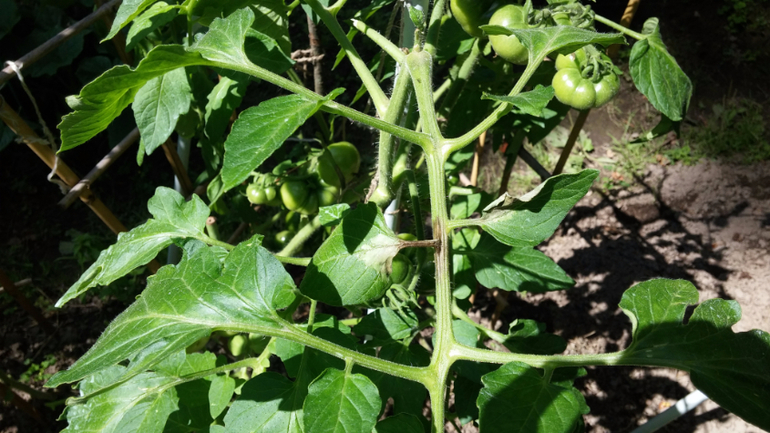 на другой грядке в другом месте помидоры тоже здоровые.