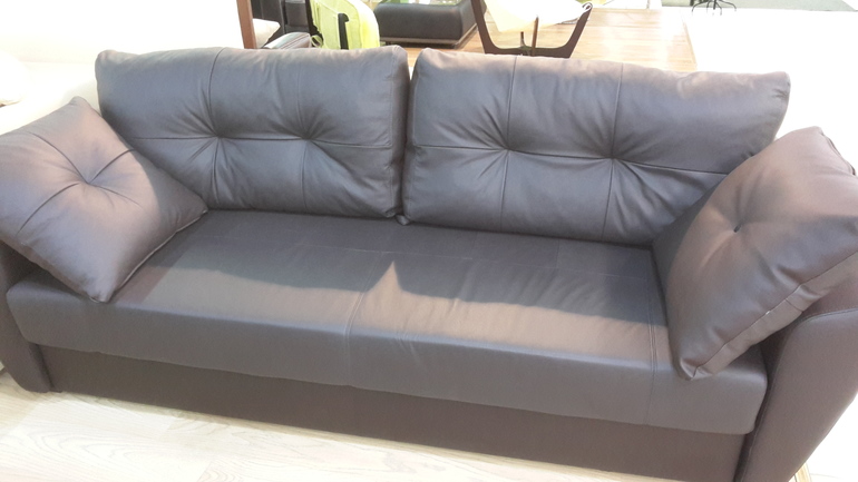 Заказала диван. Кожа. Горький шоколад. Очень удобный. Просто супер. Фото цвет сильно искажает