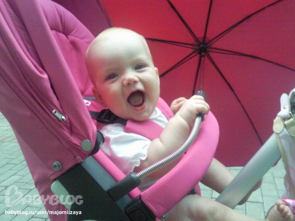 По-прежнему практически все время едим грудь. Из прикорма пробовали многое за эти 2 месяца, но часто отказывается от еды. Из того, что понравилось: тыква, яблоко, груша, банан, кабачок, картофель, овощной бульон, творог. ест иногда овсяную кашу. От остальных нос воротит. Сушки, печенья не ест, только иногда корочку черного хлеба. Зато с удовольствим пьет водичку.