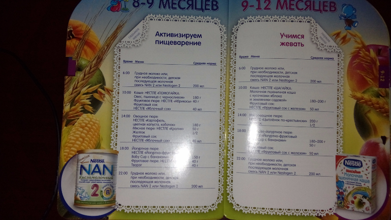 И уже к году полноценно заменяли все кормления молоком на еду. С утра каша с маслом яйцом, В обед супчик овощной с мясом, потом творог с фруктовым пюре и пили молоко,воду,кисломолочку.