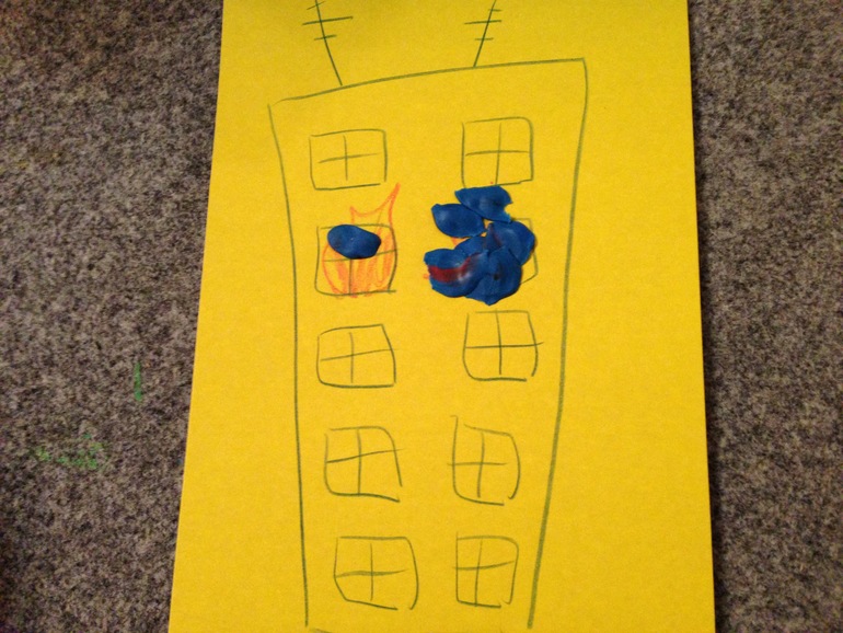 Понравилось тушить пожар пластилиновыми шариками. Мы вообще любим все на свете с пластилином.