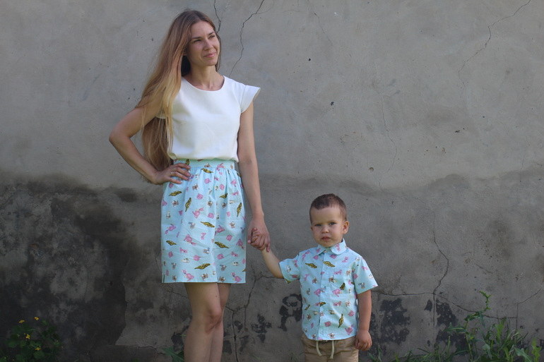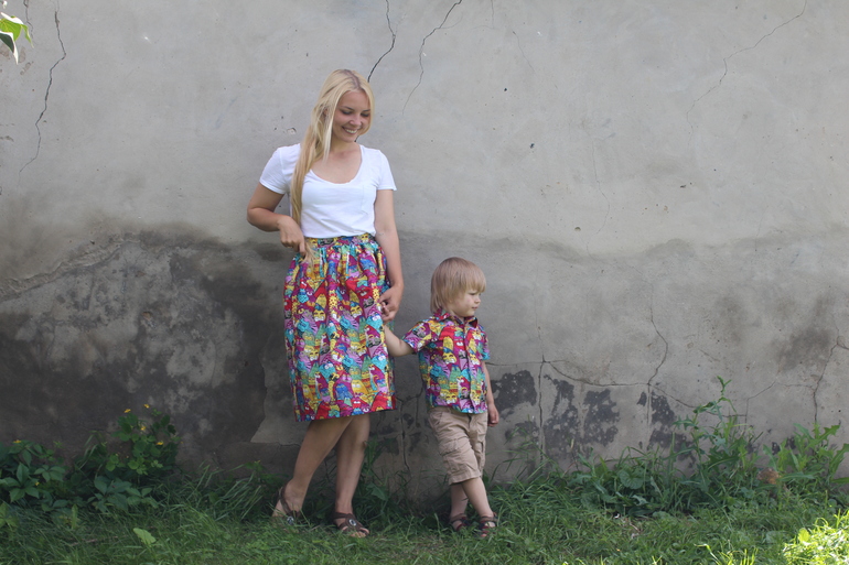 Авторская одежда IVA design1. Супер стильный лук с цветными автобусами. В инстаграме почти все раскупили. Остались размеры: 86, 92. Юбка р. 42 (на талию 66-69 см) Размер 44 (на талию 71-74 см), 46 под заказ. Стоимость комплекта мама+сын 3700 р.