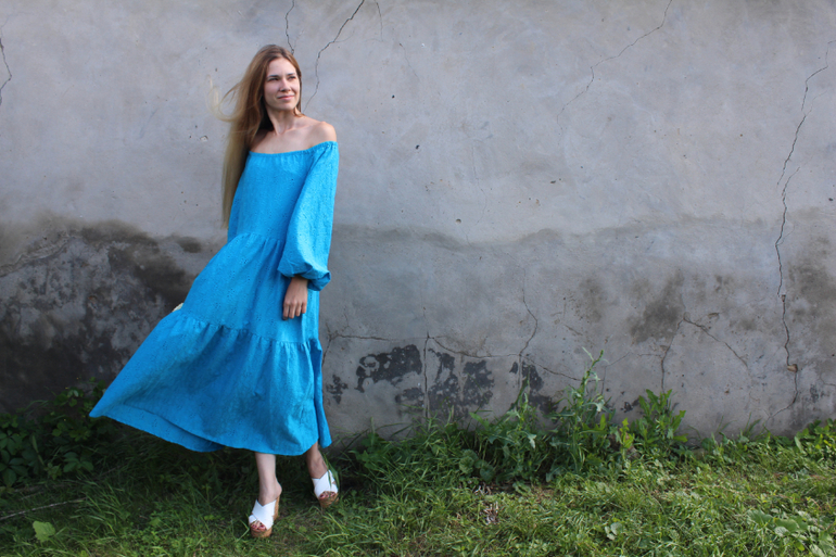 2. Шикарное трехъярусное платье из итальянского хлопка шитья. В двух расцветках - белоснежной и ярко-голубой. Можно носить на плечах или открыв плечи. Под поясок или свободным. Это платье подходит беременным!! В нем удобно кормить малыша!! Оно очень нарядное, супер комфортное и совершенно необыкновенное. Говорю как обладатель белоснежной красоты))) Не снимаю несколько дней ;)