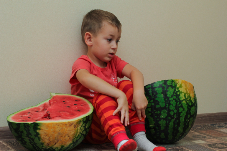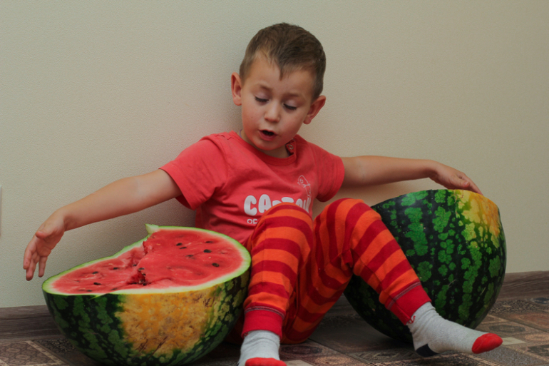 Пока я фотографировала, Саша задался вопросом, как в арбуз попали семечки, а после этого, как люди появились на земле? Честно, я не была готова к тому вопросу, так же как пару месяцев назад к вопросу:"как Милана попала в животике?".