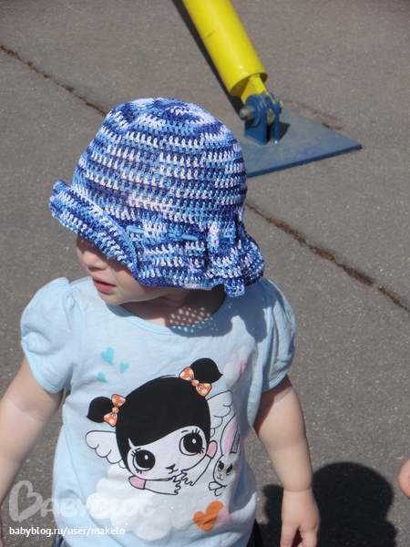 Чистый экспромт, вязала пока клубочек не кончится))) Вот только ленту надо поменять на более широкую и завязать бантом.