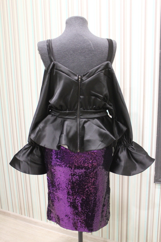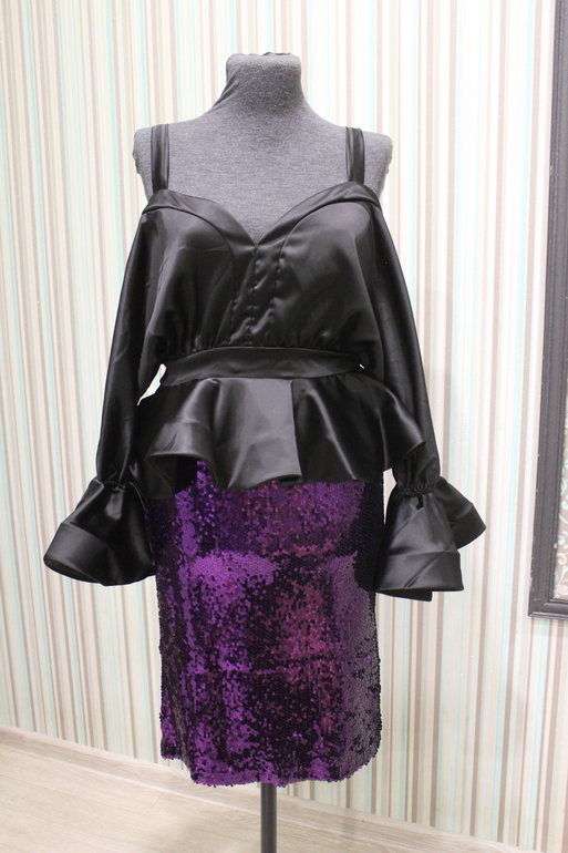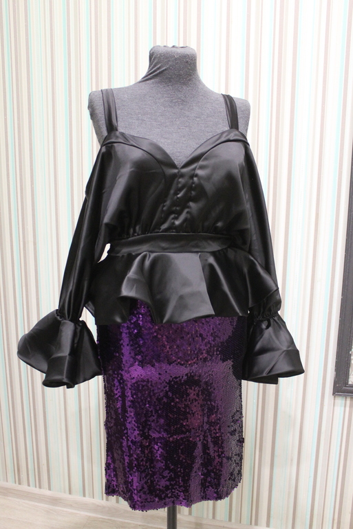 Девочки, остался всего один костюмчик, очень стильный, это двоечка- юбка 70см паетки+топ французский плотный атлас...вместе смотрится