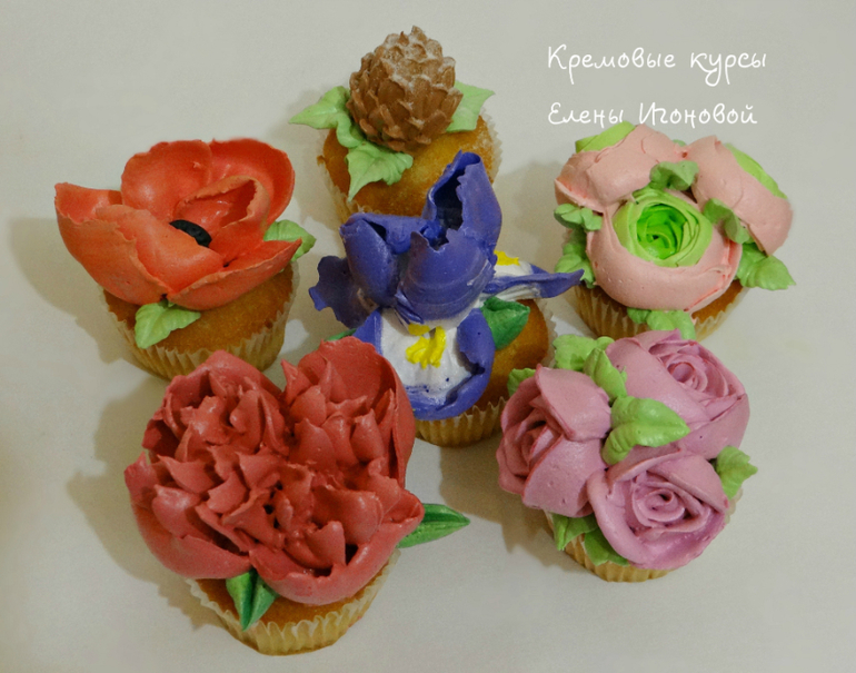 Работы с занятия по кремовому декору "Цветы и цветочные композиции". Девочки, спасибо вам за старание и веселую компанию!