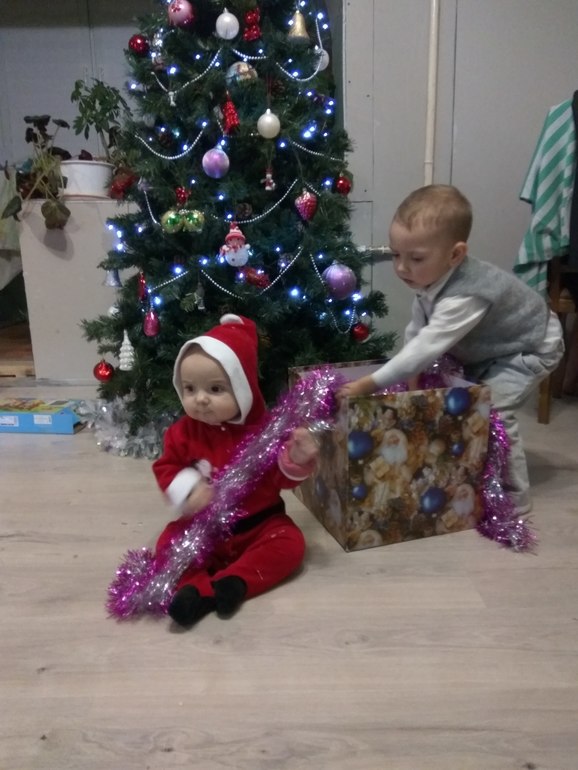 Егор каждый день "Вуу"( машину) ищет под елкой))) Привык, знаешь ли)) Зато считать научился ))) " Ону кофету" , "Де конфеты")) " Есе тутьтуть")))