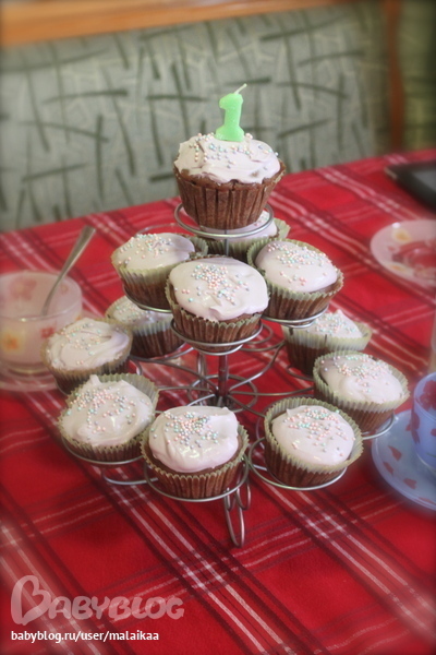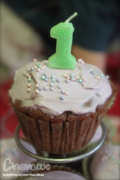 Ксюш, ну вообще, красота какая! Платье Burberry - вообще слов нет, сережки в ушках - отпад, Миляся у тебя модница! Кексики такие милые получились, каждому свой кекс и очень круто они на этой подставке смотрятся, намного оригинальней любого торта! Ты очень здорово все организовала, умница! А где сиреневые шары, которые ты заказывала вместе с подставкой для кексов?