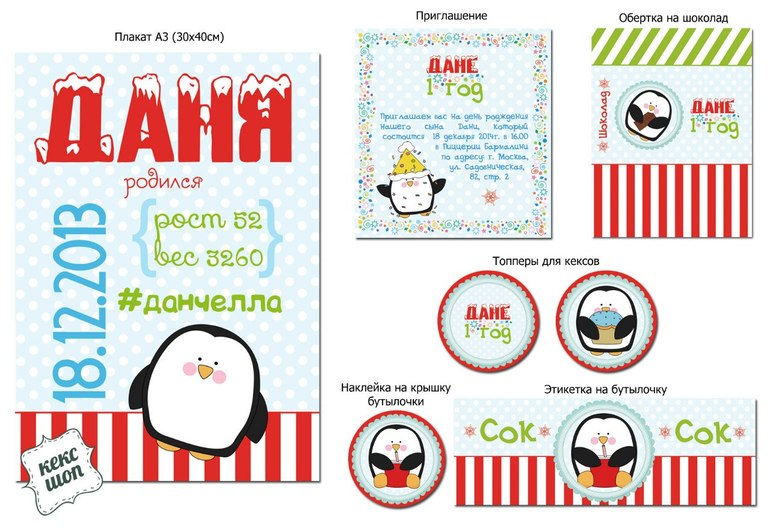 Мы с Ксюша делаем дни рождения "под ключ", как говорится. :))) Продумываем общий стиль праздника, разрабатываем дизайн полиграфии (этикетки и наклейки на сок, топперы для кексов, постеры, обертки на шоколад, приглашения и пр.), печатаем в типографии, своими руками наклеиваем на бутылочки и оборачиваем шоколад, потом привозим имениннику готовый продукт, украшаем сладкий стол, сотрудничаем с кондитерами, привлекаем фотографов для съемки мероприятия, аниматоров. В общем, если вы хотите устроить веселый и стильный праздник своему ребенку, обращайтесь. :))