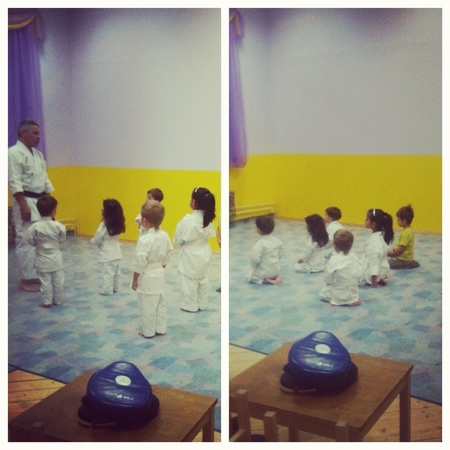 На карате сегодня Кирилла поставили в первый ряд! Не знаю что это значит, но до этого Кирюха стоял обычно в последнем ряду! И я так рада и счастлива и горда!!!!!))