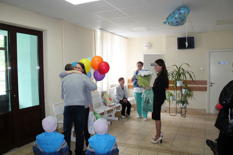 Желания и мечты своей Танюхи я знаю) Папа Темки не романтик, и стандартно их бы ждали цветы, поэтому пришлось нам со Светой взять инициативу в свои руки) Непрекращающийся дождь сегодня и расстояние до Таниного города (200км) внесли свои коррективы. Сделать праздник от и до не получалось из-за дороги, наклейки клеили перед роддомом на мокрую и грязную машину, я объездила кучу магазинов в поисках детского шампанского в стеклянной бутылке, все вымокли... Но! Это все не важно! Главное слезы счастья в глазах мамочки, ее радость и смех! И мы тоже счастливы!