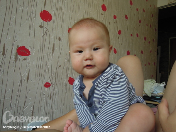Мой малышПолзем передвигая ножками а не прыжками, как раньше, на фотик! - 5 и 14 дней...