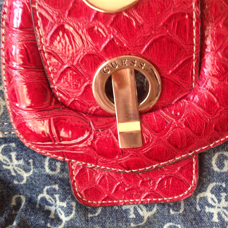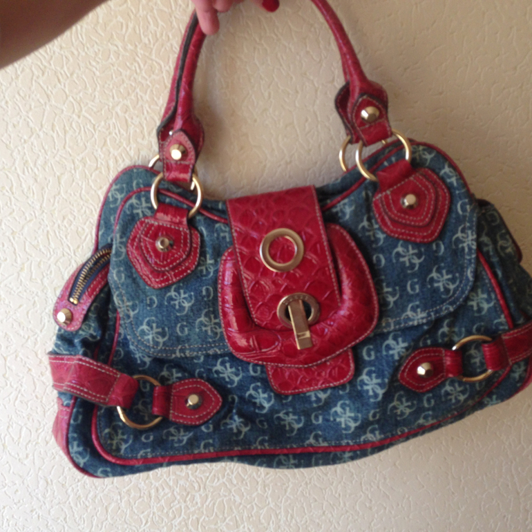 Это комбинированная сумка. Кожа красная лакированная и текстиль. Да на плечо можно. На лето под джинсы самое оно.