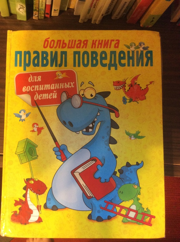 1. Большая книга правил поведения. Её нам подарили уже года три назад и до сих пор она в любимчиках. Дети её называют: наша самая любимая " маленькая" книга. Она и на самом деле " маленькая"): формат А4, толщиной почти в 5 см и поле 500страниц стихов на самые актуальные для детей темы. Не совсем в восторге от иллюстраций, но зато они отражают всю суть стихов, так что пойдёт!