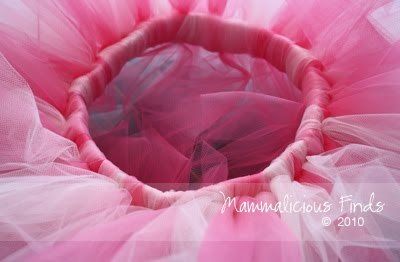 Резинку замкнуть в круг, зашить. Для светлого фатина подойдет белая резинка. Для темного выбирайте черную.